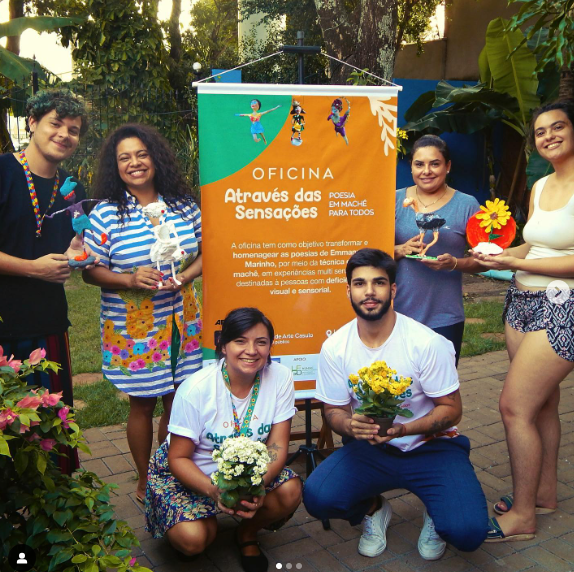 Um exemplo desse trabalho é a "Oficina Através das Sensações - Poesia em Machê para Todos". Esta oficina inovadora materializa a poesia por meio da técnica do machê, tornando-a acessível a pessoas com deficiência visual. Nela, os participantes têm a oportunidade de explorar e criar poesia utilizando uma abordagem sensorial que enriquece a percepção tátil e emocional.